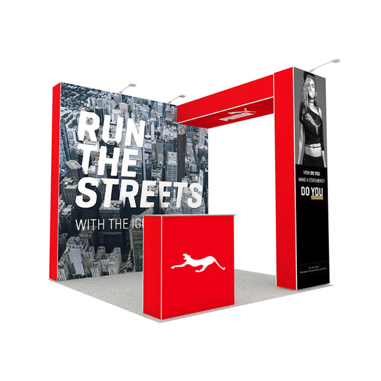 Wieder verwendbarer 3x9 m 10x30 Modularer Aluminium rahmen Messestand mit Aufdruck